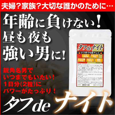 マカ・トンカットアリ・アルギニン・亜鉛・トナカイの角が超高配合のサプリメント『タフdeナイト』【送料無料】【toukai1】【smtb-tk】【smtb-k】【w3】 価格: 3,850円 レビュー評価: 4.27 レビュー数:11 html,body,div,dl,dt,dd,ul,ol,li,span,h1,h2,h3,h4,h5,h6,pre,from,fieldset,input,textarea,select,p,blockquote,th,td {margin: 0;padding: 0;outline: 0;}div#shousai_sanso-10 {width: 440px;line-height: 1.5;}p.catch { color: #3366ff; font-size: 100%;}div#shousai_sanso-10 p{ padding:5px 0;}p.bg33 {width: 44 Supported by 楽天ウェブサービス |